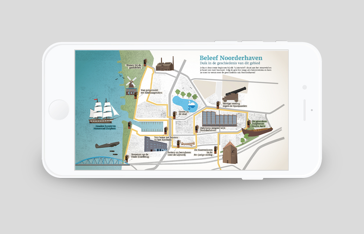 In opdracht van de Gemeente Zutphen heb ik voor de Noorderhaven meegewerkt aan dit mooie project. De Belevingsroute door dit gebied.