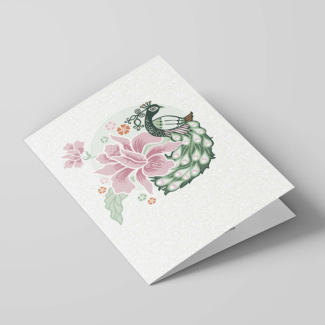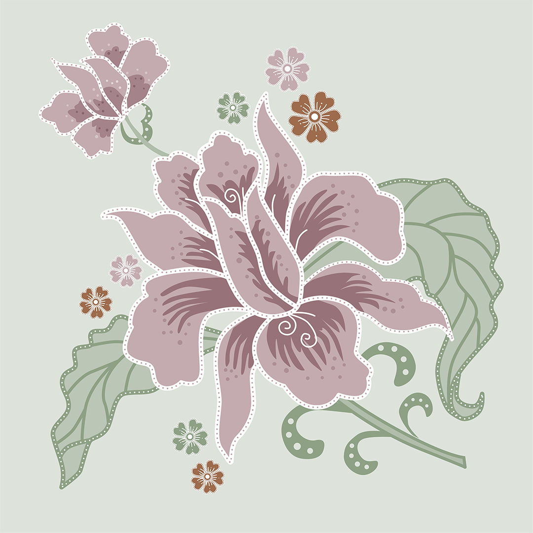 De illustratie is gebaseerd op een eeuwenoude verftechniek uit Indonesië, want daar liggen onze roots. Batik is een verftechniek om kleur op textiel aan te brengen. Deze eeuwenoude techniek is zelfs op de Unesco lijst van Werelderfgoed geplaatst. De twee grote roze bloemen vertegenwoordigen mijn Opa en Oma. daar omheen zie je 7 kleine bloemen. Dit zijn hun kinderen, mijn ooms, tantes en moeder. De pauw staat voor trots, want dat waren ze op ons allemaal. De veren van de pauw bestaat uit 19 losse veren. Dit vertegenwoordigt het aantal kleinkinderen van mijn Opa en Oma. Samen vormen wij één verbonden geheel.
