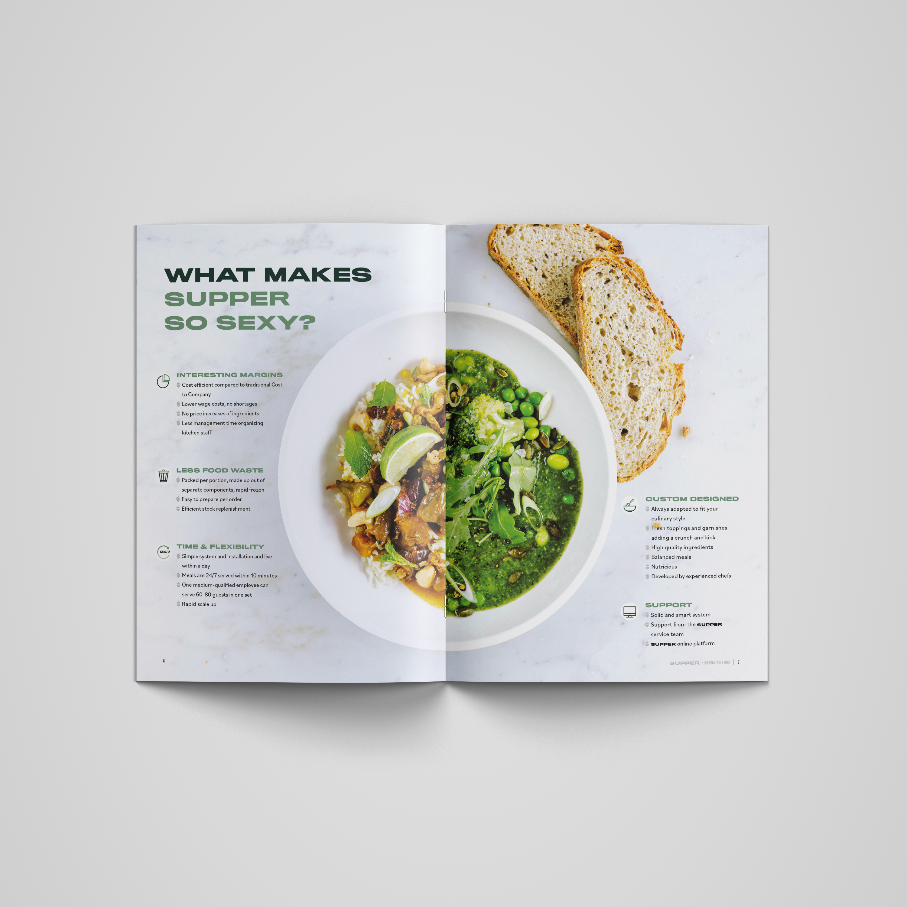 SUPPER dat ik in samenwerking met deze innovatieve mensen een brochure mocht maken die past bij hun missie. Hoogwaardige maaltijden leveren die 24/7 te serveren zijn en daarnaast ook voedselverspilling tegen gaat.